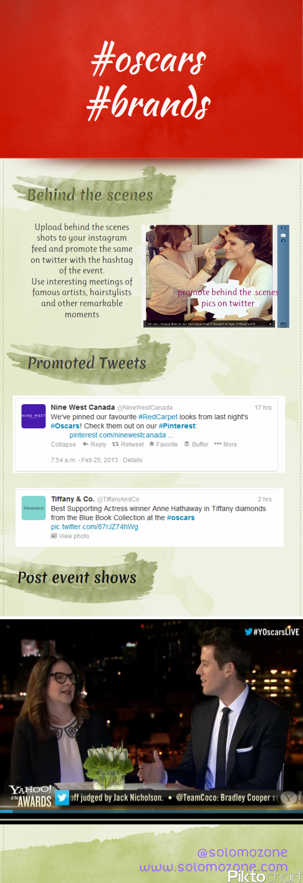 3. Link your Brand to the Event theme by sponsoring exclusive Behind the Scenes moments and promote the sponsored pics by uploading them to the Instagram feed or as a promoted Tweet. Ask Celebs to endorse your brands and create an Eco-system that promotes exposure in Social Media with related content.