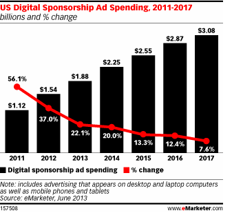 eMarketer has based its estimates of digital sponsorship ad spending on the analysis of reported revenues from major ad-selling companies; data from benchmark sources the IAB and PwC; estimates from other research firms; consumer internet usage trends; and eMarketer interviews with executives at ad agencies, brands, online ad publishers and other industry leaders.