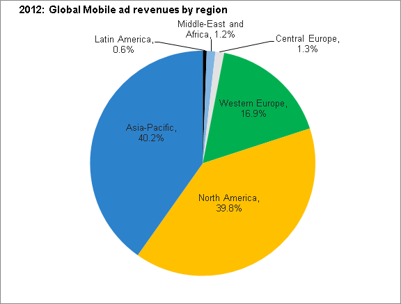 Mobile Advertising revenues are split regionally with Asia- Pacific and North America at 80% of the revenue.