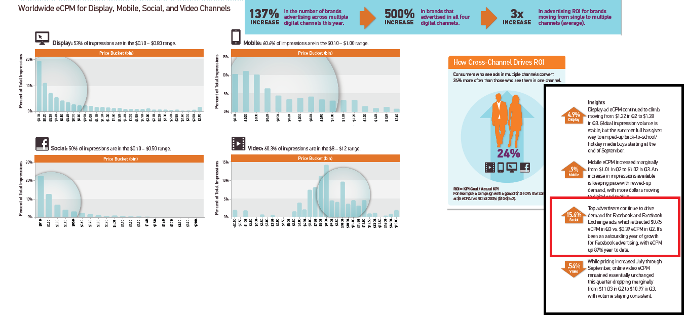 “Top Advertisers continue to drive Facebook Exchange Ads, which attracted USD 0.45 eCPM in Q3 vs USD 0.39 eCPM in Q2. The eCPM for Facebook Advertising has been up by 87 % YTD.”