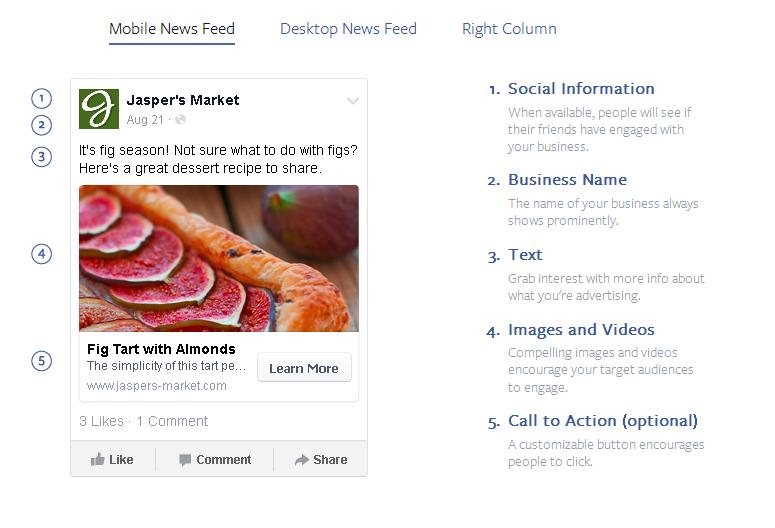 Facebook Advertising may vary with the placements to include Mobile News Feed, Desktop News Feed and Right column as well as the objective of the campaign. To familiarize yourself with different elements for each advertising type, here is a snapshot from Facebook advertising page that can help you in publishing your ads. If you are looking at boosting a post you have the option of going with Photo, Video and Text. The campaign objectives may vary as seen in the Exhibit A.