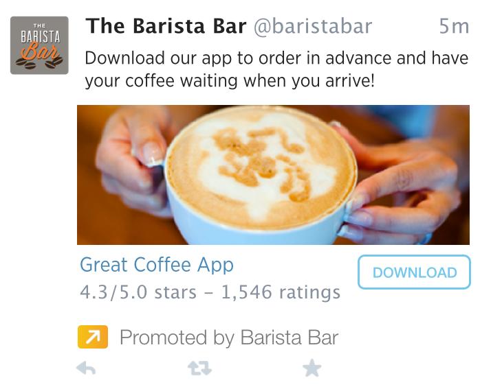 Twitter App Card is a useful Tool to promote your App with Mobile app Promotion. Twitter campaigns now include Tailored Audiences that can help you devise campaigns for the most likely target audiences based on the profile of your current customers.