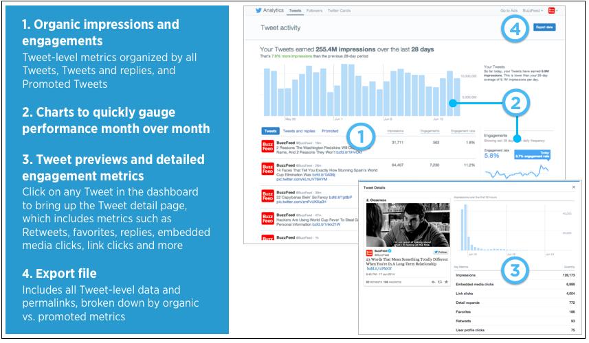 After you have achieved your goal of reaching audiences for your remarketing effort Twitter Analytics Dashboard helps you analyze your effort across five key metrics.