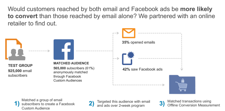 Facebook Ads extended the reach by 77 % giving retailer the targeted audience that was not available with Email Marketing campaign. Facebook Advertising gave additional unduplicated reach that was not available with email only. This is possible with Facebook Lookalike Audience which lets you create a likely profile of your targeted buyer.
