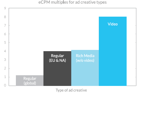 The eCPM for Mobile Video continues to be highest and is two times that of other formats which means that the medium is seen as more effective as it can capture the emotive elements in advertising better providing grater creative Latitude for Brands and Advertisers.