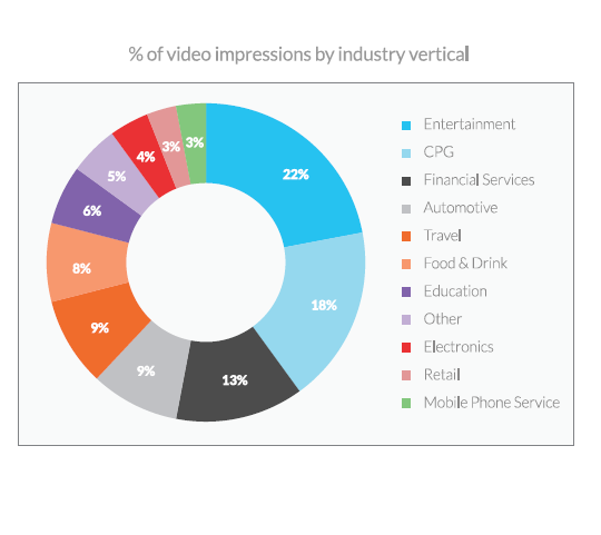 Entertainent, CPG, Electronics and Retail are the leading categories for Mobile Video advertising.