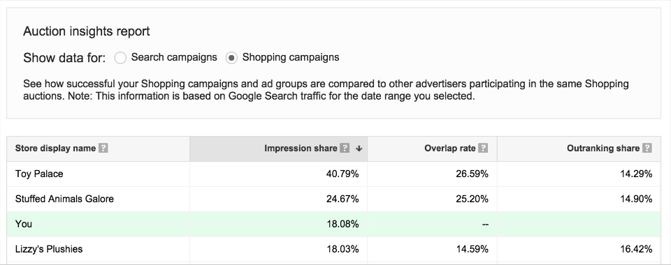 Auctions Insight report lets you optimize your PLA campaign by analyzing your performance with the Peers.
