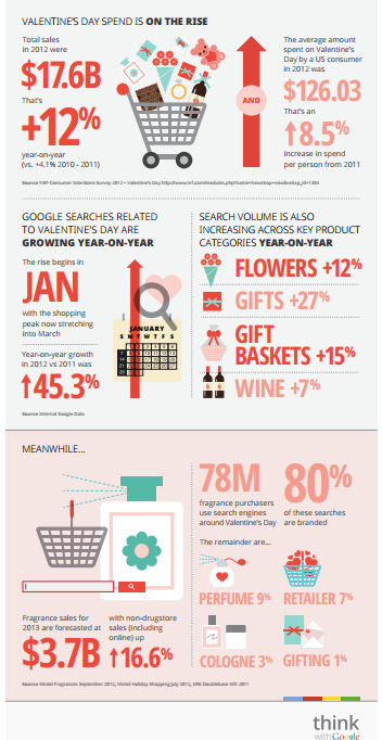 https://twitter.com/corpshop/status/562268655879479296According to Google Analytics Blog, the Sunday before Valentine’s Day sees the biggest spike in week-over-week transactions with an average increase of 10 percent. The same holds true for conversion rates and sessions, with an average increase of 6 percent and 4 percent respectively. Besides a week-over-week increase, the transactions are 5 percent higher on that day than for the average Sunday in the quarter. The growth in transactions could indicate that consumers are using that Sunday to find and purchase their gifts, making it a good opportunity to invest in getting consumers to your site for some Valentine’s Day shopping. If you plan to invest in advertising for this holiday, one way to prepare for Valentine’s Day is to adjust your bids.