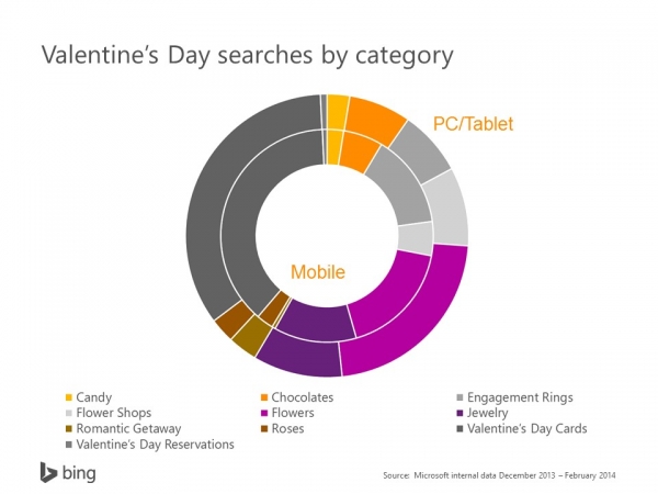 The categories that are most searched are Greeting cards, Candy, Flowers and an Evening out or dinner.