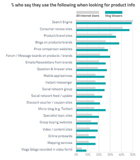 According to a research report Vlogs are not one of the top sources for finding out about new products or product information.