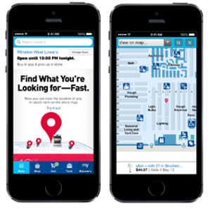 Retailers have used Product locators to assist the Smartphone shopper as seen for Lowe’s App.