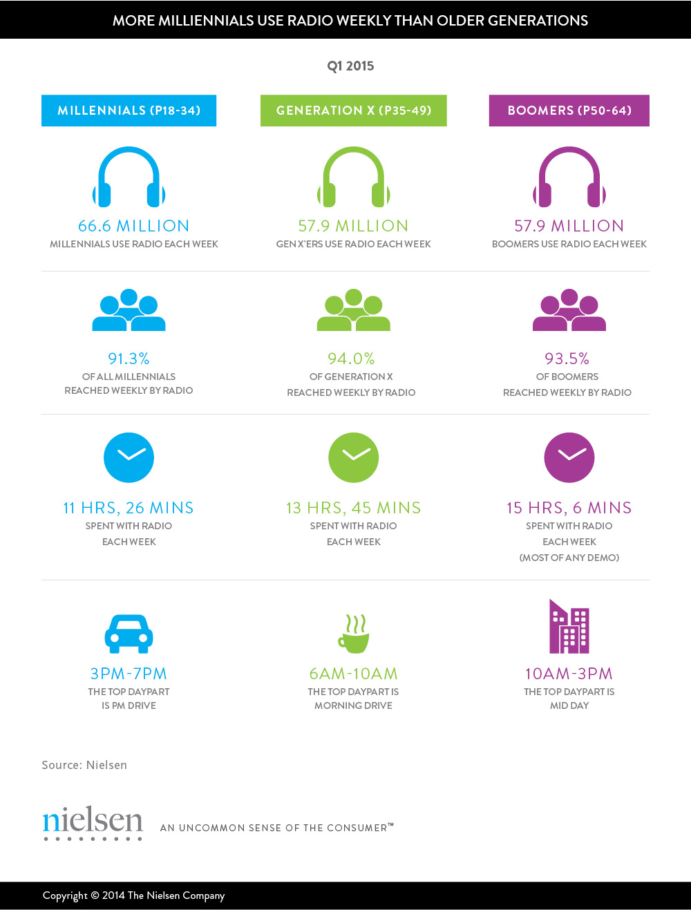 Millennials are the Largest audience on Radio and tune-in in the evening with 3pm-7pm being the Top Daypart.