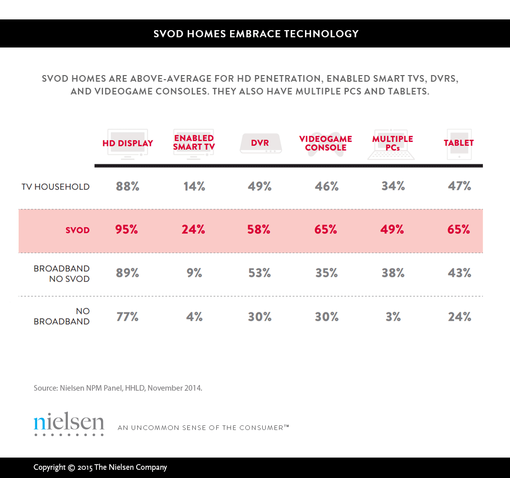 41 percent of U.S. homes had access to an SVOD service in fourth-quarter 2014.