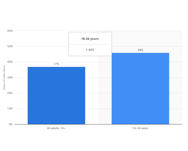 Millennials make for 45 percent of Share of Subscribers for SVOD (Streaming Video On Demand).