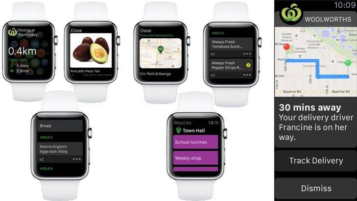 “Shopping lists created in the Woolies Shop app can also be accessed via the Apple Watch app.