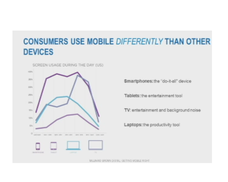 Mobile creative is increasingly important as mobile campaigns are found to be more effective, with shoppers increasing using mobile InStore with a high incidence of both Mobile App and Browser usage. Nearly 22 percent of Shoppers access social networks on Smartphones while shopping InStores. The use of devices varies with Smartphones being the leading device that is used throughout the day, while Tablets are more popular for entertainment content.