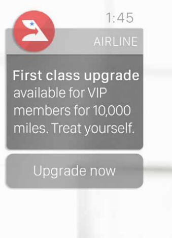 With the high level of personalized consumer engagement, glanceable moments,provide a whole new way to engage users. According to a study by Forrester, the engagement sweet spot for wearables is about 3 seconds—not 30 seconds , as had been previously touted for smartphones. This shortened attention span demands content that is more relevant and immediately actionable. Embracing single-click navigation Smartwatch users will not accept anything less than single-click navigation. With the right contextual data, brands can predict a user’s next steps and deliver key messages to guide customers through the next action.