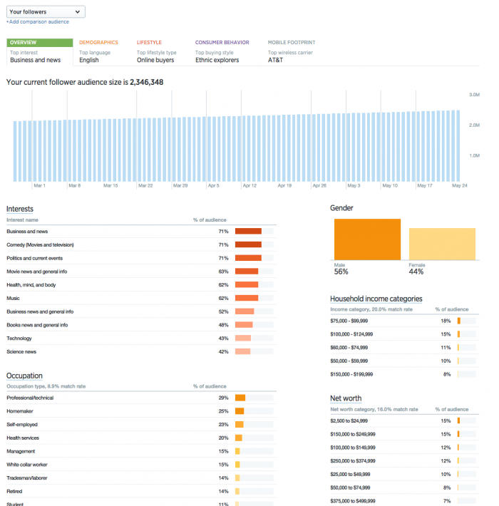 Twitter Audience Insights details the profile of audiences that can help you build more effective Buyer Personas making your campaigns resonate better, with customized creative and messaging.