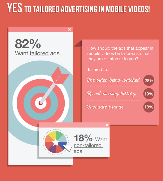 “82% state that ads that appear in mobile videos should be tailored so they are of interest. This clearly indicates to brands and advertisers alike that being relevant—to context and/or to consumers and their habits/behaviour, is vital to drive engagement.”