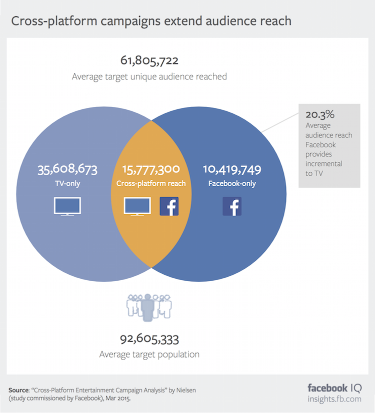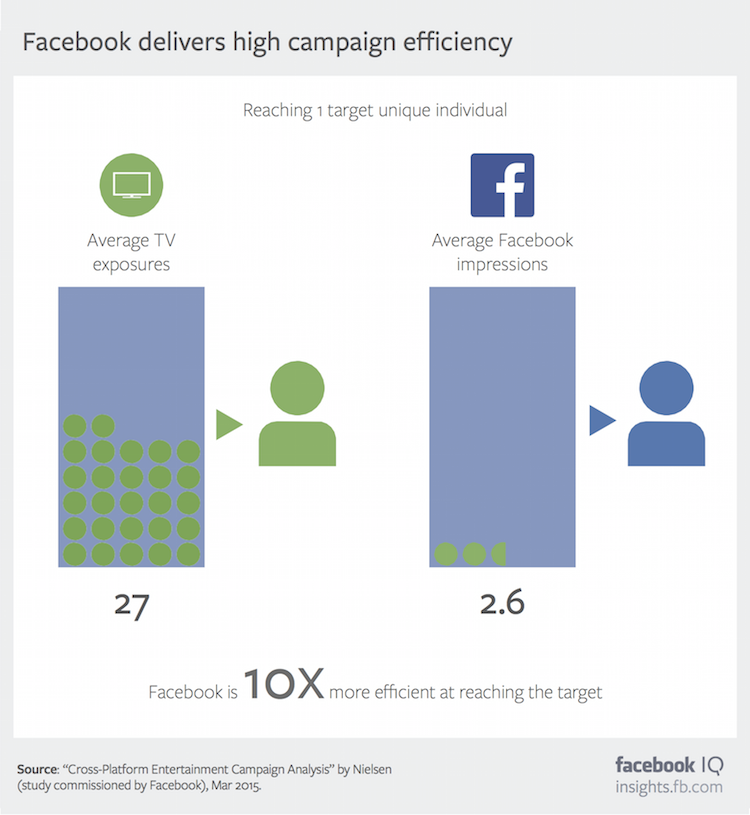 Facebook campaigns helped advertisers reach an additional 10 Million people who were not available with TV Advertising alone, providing an incremental reach.