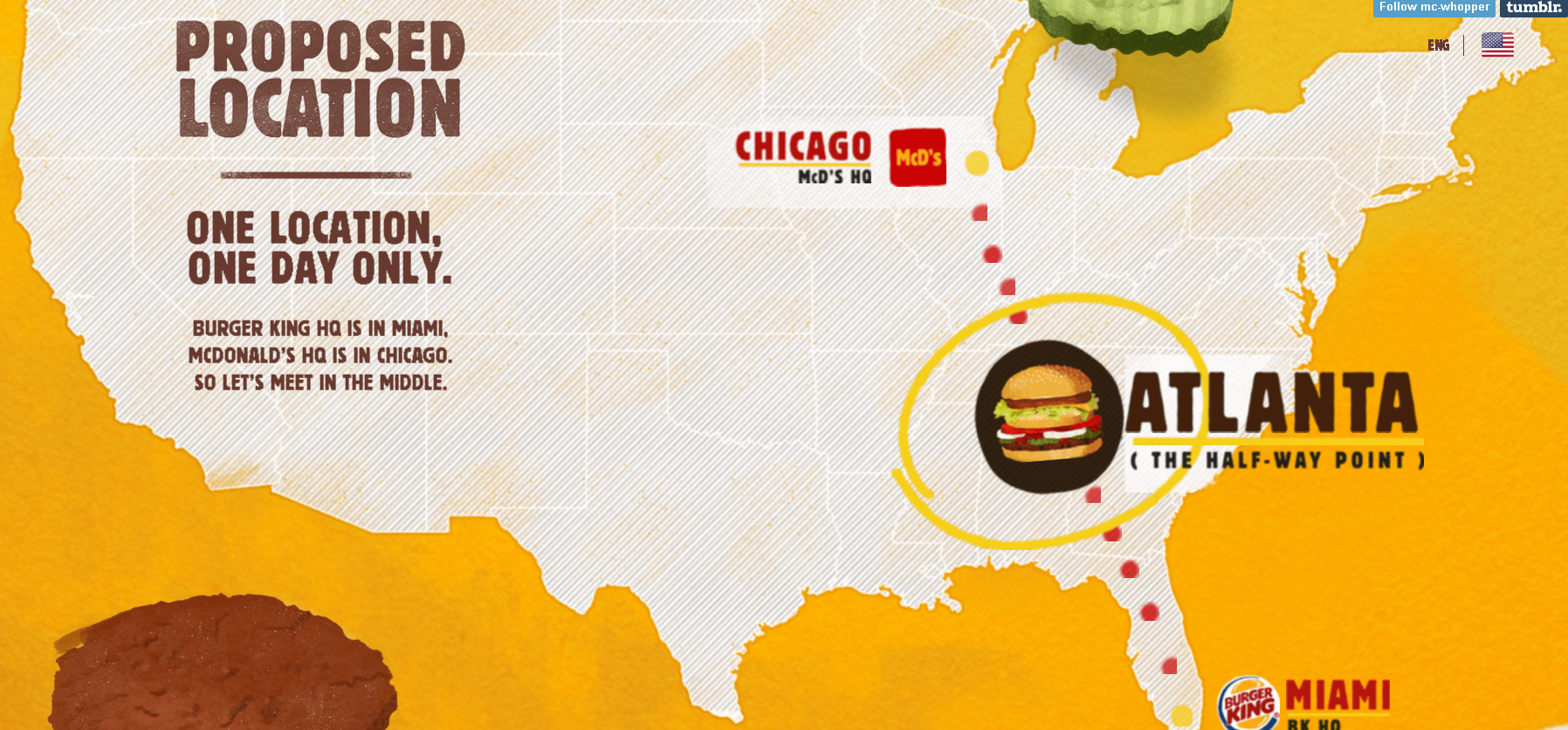 Burger King revealed it is already constructing a pop-up restaurant (ostensibly in Atlanta, the location Burger King originally proposed to McDonald’s). All that’s required of the other restaurants is a donation to nonprofit organization Peace One Day, and “a simple yes.”