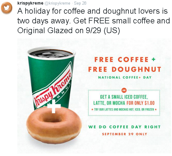 Tim Hortons post for National Coffee Day engages users for a time they are most likely to be looking forward to the messaging from a coffee brand.