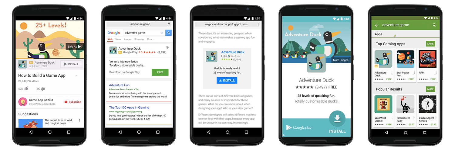 Universal App Campaigns will be available to all developers and advertisers as a new AdWords campaign type that helps you connect with app users across Google Search, Google Play, YouTube, and the Google Display Network.