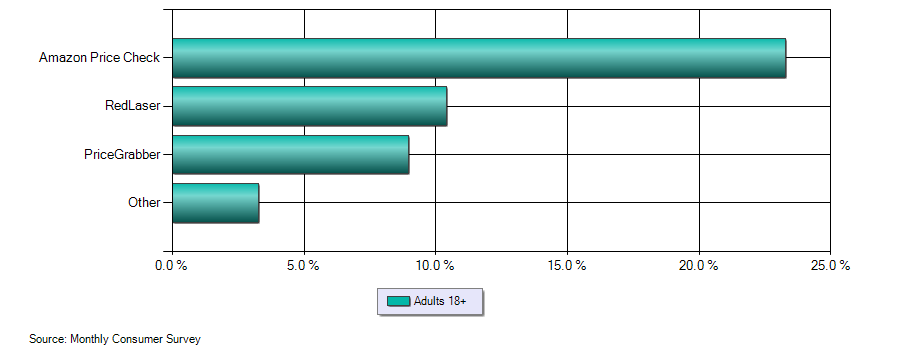 Prosper Insights research indicates that Store Loyalty Cards at 27 percent and Online Coupons at 19 percent have the highest Promotional Influence. SmartPhones, are used by majority of users 54 percent for looking for a store or store hours, followed by browsing or looking for a service or product. Nearly 37 percent users undertake Comparison Shopping and Price Apps and checking customer reviews with the smartphones. Of those that used the phone for comparison shopping, Amazon Price Check was the most used app.