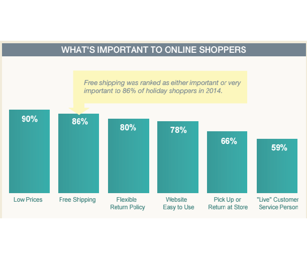 Among the factors that influence the shopper decision the most during holiday season, the most important factor is Low Prices, followed by Free Shipping, with 90 percent and 86 percent of shoppers ranking Low Prices and Free Shipping to be important or very important.
