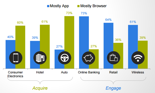 The usage of App and Browsers differs for each vertical on Smartphones calling for a different Mobile targeting and marketing strategy.