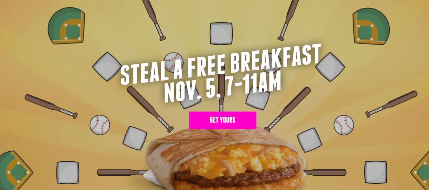 Taco Bell with the Live Mas moment promotion of “Steal A Free Breakfast”, where Taco bell promised a free breakfast for everyone for the first stolen base.