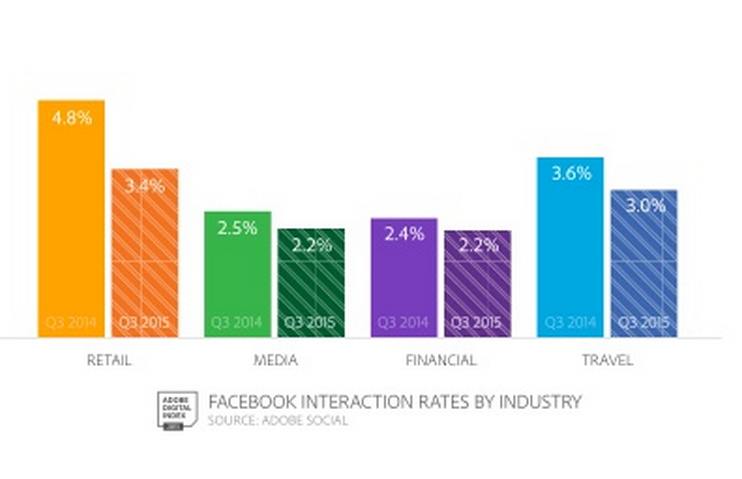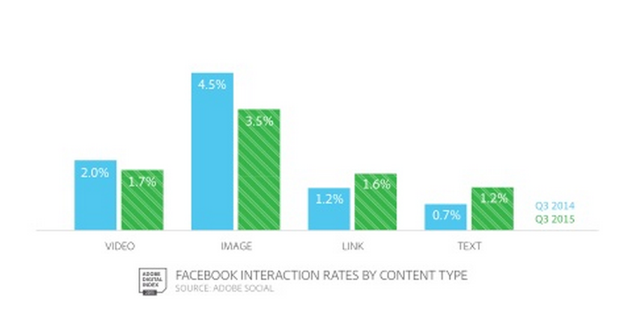 The most engaging format for Facebook remains images with interaction rates a high as 3.5 percent. Retail and Travel are the top verticals for interaction on Facebook.