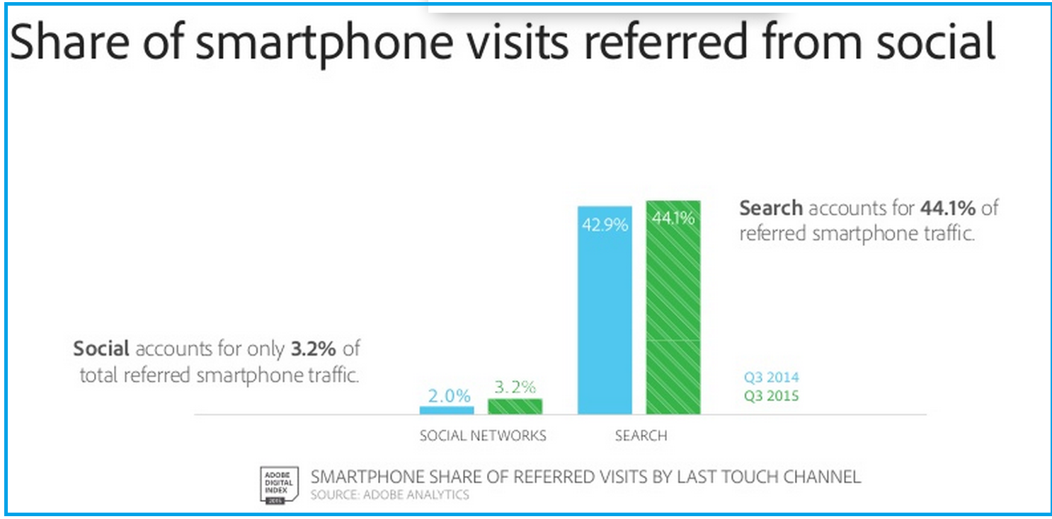 For Smartphone traffic, Visits referred from Search are at 44.1 percent, as compared to 3.2 percent from social networks.