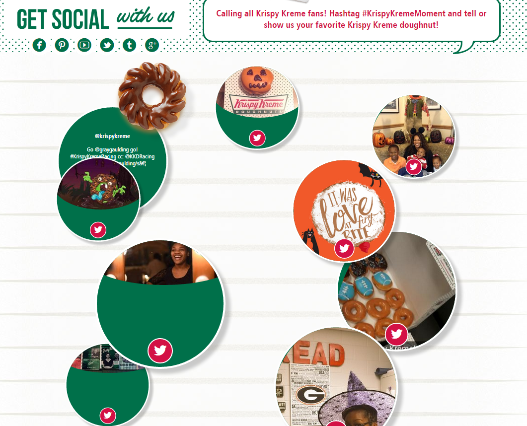 Krispy Kreme’s site design encourages interactivity on Social channels with User generated Tweets and Instagram posts, prominently featured on the brand’s site. The product and the shop sections are customized to feature seasonal offers that create recall for new product launches and limited time offers.
