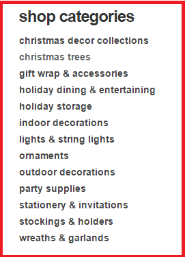 The landing page for Christmas gives the range of products that shoppers are interested in for Christmas shopping.