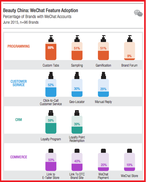 According to L2 Digital IQ Research, Beauty brands in China, effectively use WeChat for marketing programs with customized features. The adoption for features such as links to e-tailer store, provide an opportunity for retailers to be present where the audiences are.