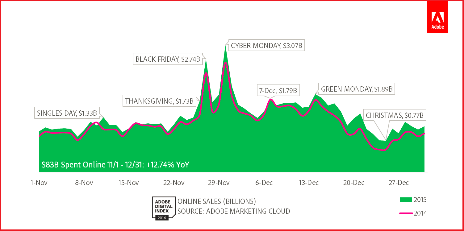 Adobe Digital Index, reported an increase of 12.7 percent, with online sales at USD 83 billion for the holiday Season, making the season better than expected, where the online sales were expected to grow at 11 percent Year-Over-Year. As reported by Adobe Digital Index, “It wasn’t until the very end of the season that we saw a significant surge in sales, which drove the 12.7 percent year-over-year growth. Phone traffic exceeding desktop traffic some days was one of the drivers of that growth.”