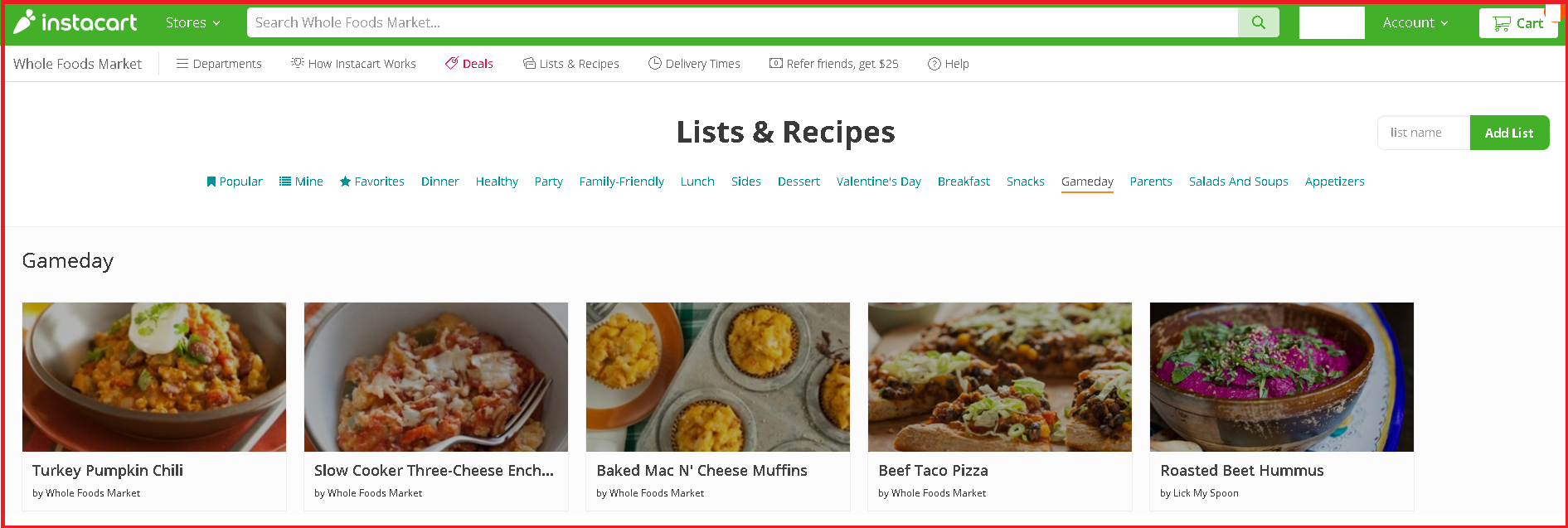 Create content that generates interest optimized for search queries. Instacart an online grocery site allows users to browse recipes for an occasion and add ingredients directly to the cart from any of the featured brands. This takes the user a step ahead in mobile shopper journey.
