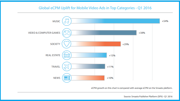 Video Advertising gives the best returns for publishers with growth in Video eCPM being higher by 11 times compared to the image and text ads. The growth in Mobile Advertising revenue on an eCPM basis is the highest for Music Content genre followed by other content genres.