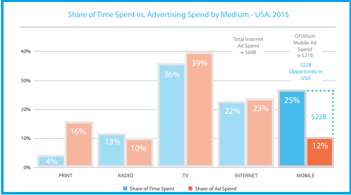 Mobile Advertising presents a wide growth opportunity with 25 percent of the time spent on Mobile where as Mobile advertising is only at 12 percent of advertising budgets.
