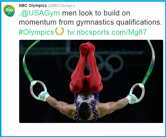Theme your posts with a style that gives users a different content experience. Gymnastics posts from NBC Olympics give the users a different content experience with action oriented shots that are stylized to give viewers a fluid experience.
