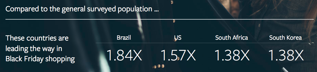 Black Friday is a global event. Shoppers from Brazil, US, South Africa and South Korea over index and are most likely to buy on Black Friday as compared to the Globally surveyed shoppers.