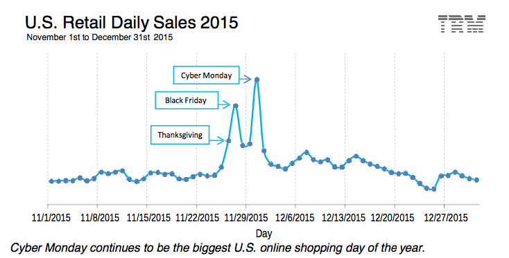 Cyber Monday continued to be the biggest online sales day, ringing in 17.8 percent higher sales than 2014. Cyber Monday sales were 25.5 percent higher than Black Friday online retail sales.