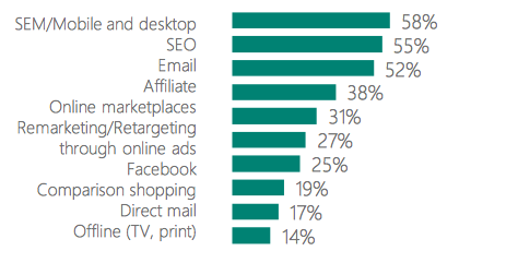 The US retail sales for Holiday Season 2016 are likely to hit USD 868 Billion with a surge in e-commerce volume, that accounts for nearly two-thirds of the season’s Year over Year growth. According to Bing Ads Insights Report, Search Engine Marketing and Organic searches account for more than 50 percent of all sales and acquisition. Online Search is also termed as the “Preferred Channel” for Gifts Inspiration. Nearly 50 percent of the planned budgets were allocated for Search Engine Marketing and Search Engine Optimization by Retailers in 2015.