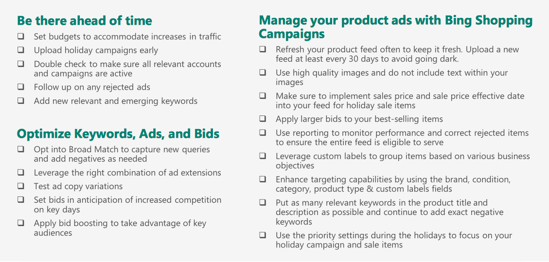 With the high search volume, during the holiday season advertisers need to be ready with their campaigns as early as the first week of October.
