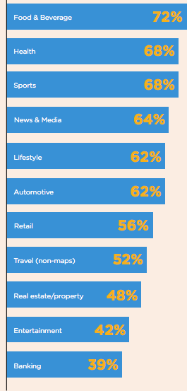 Mobile search trends based on 3.5 Million mobile site visits and hundreds of millions of online visits, conducted in 2016 for a four-week period beginning April 10 and ending May 7, 2016, found that for some sectors, primarily Food and Beverage category the smartphones and tablets account for dominant share of site visits. For Food and Beverage category, mobile site visits are at 72 percent of searches that result in a visit.