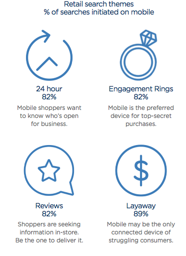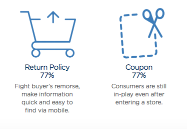 Mobile searches that included words “return policy,” “price match” or “reviews” were initiated on a mobile device at least 77 percent of the time and cue in higher purchase intent.