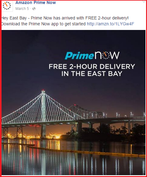 Amazon’s Prime Now builds on deals and ultra-fast delivery promise with social media posts.