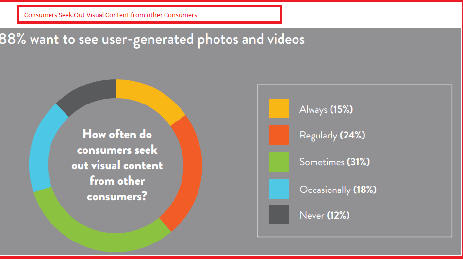 88 percent of consumers look for photos and videos submitted by other consumers and 58 percent of millennials look for photos and videos in reviews.