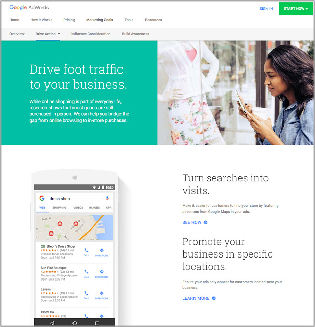 Google AdWords will now recommend the best way to drive action including store visits, web engagement, with all possible ad formats such as the ones with store directions that can help people find your nearest business location.